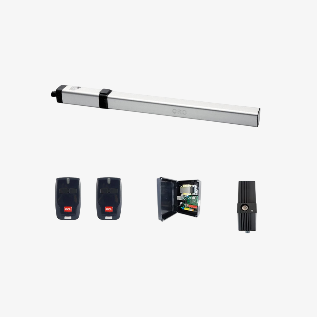 El Brazo Hidráulico BFT ORO-E, para portones batientes, es ideal para uso residencial y aplicaciones de tráfico moderado. Su tecnología hidráulica proporciona un funcionamiento suave, silencioso y de larga vida útil, incluso en condiciones climáticas exigentes.